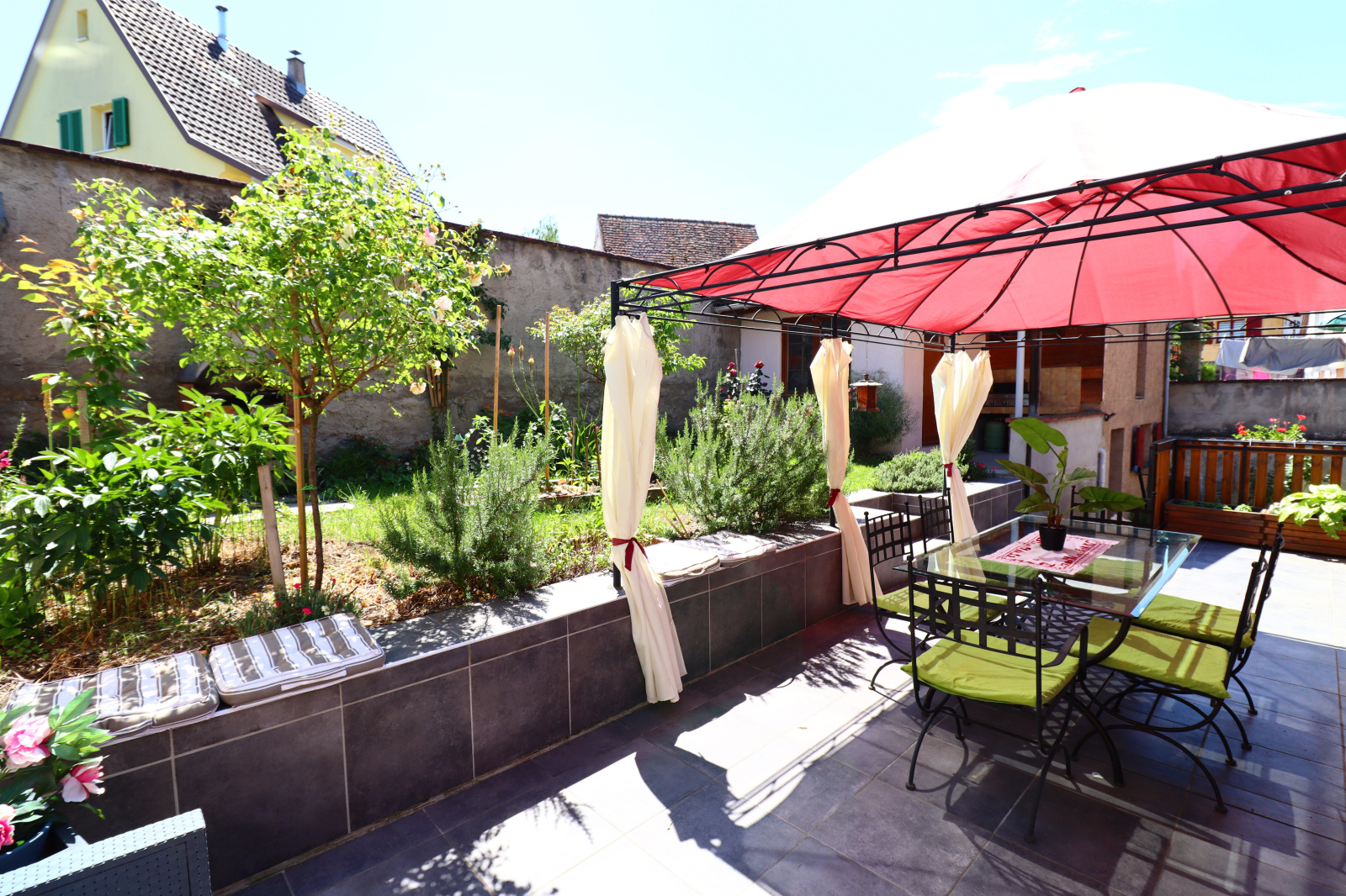 Entre Colmar et Ribeauvillé, à Mittelwihr, maison de ville complètement rénovée et divisée en deux parties : habitation & gîte.
