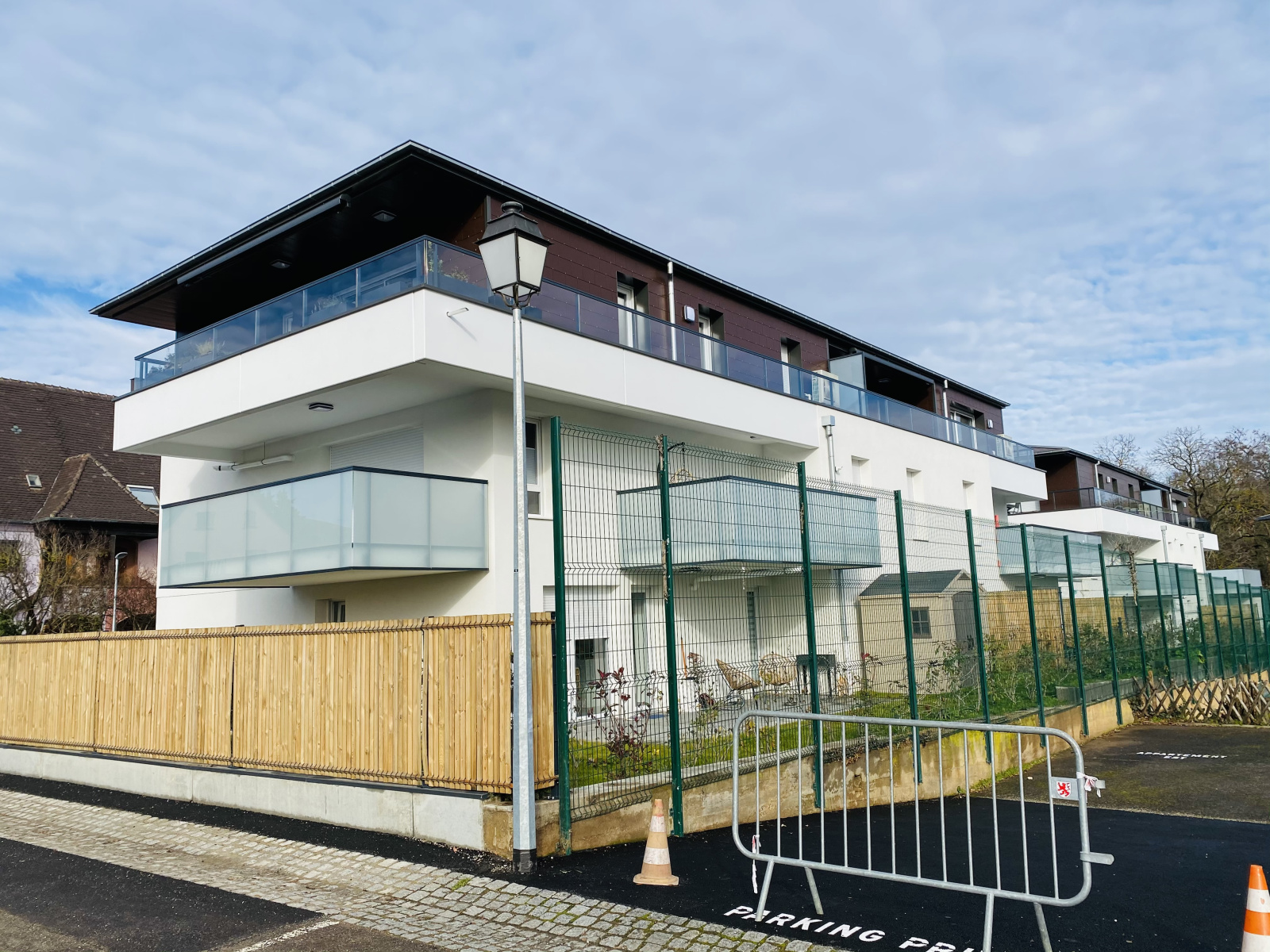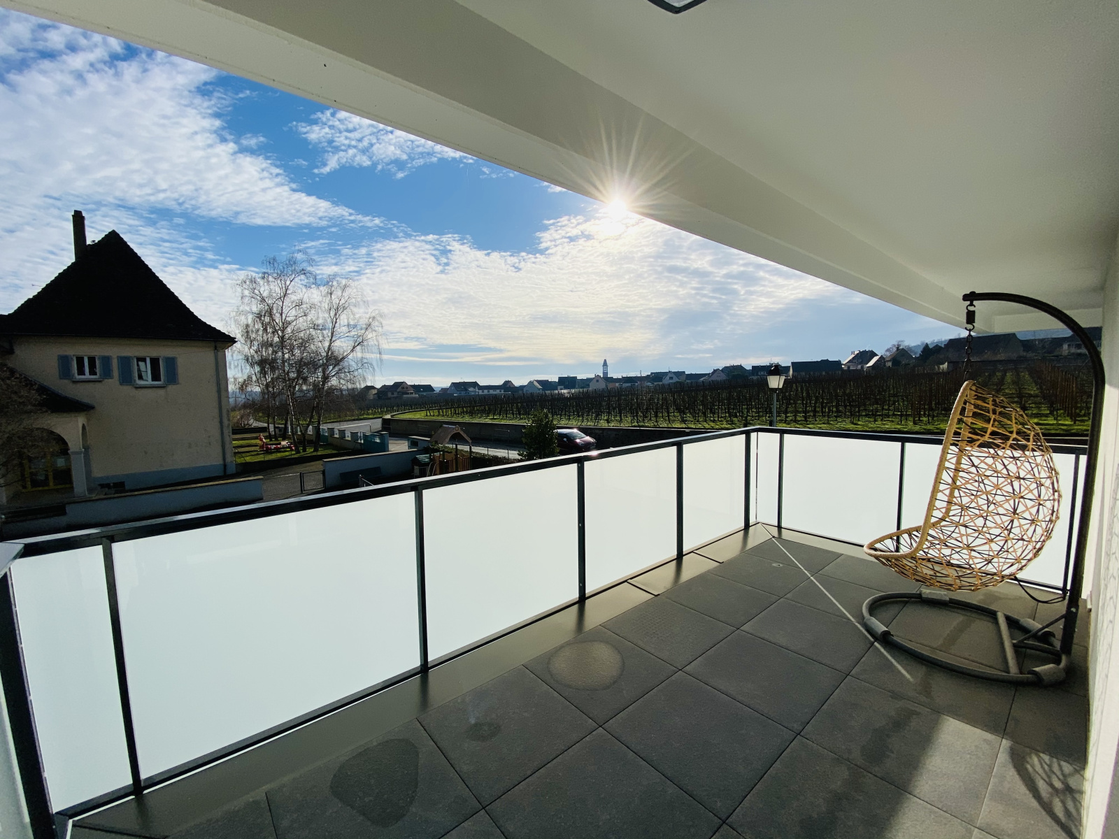 Entre Colmar et Ribeauvillé, à Mittelwihr, lumineux appartement 3 pièces de 62m2 avec deux chambres un garage, une cave et une place de parking et un ascenseur.