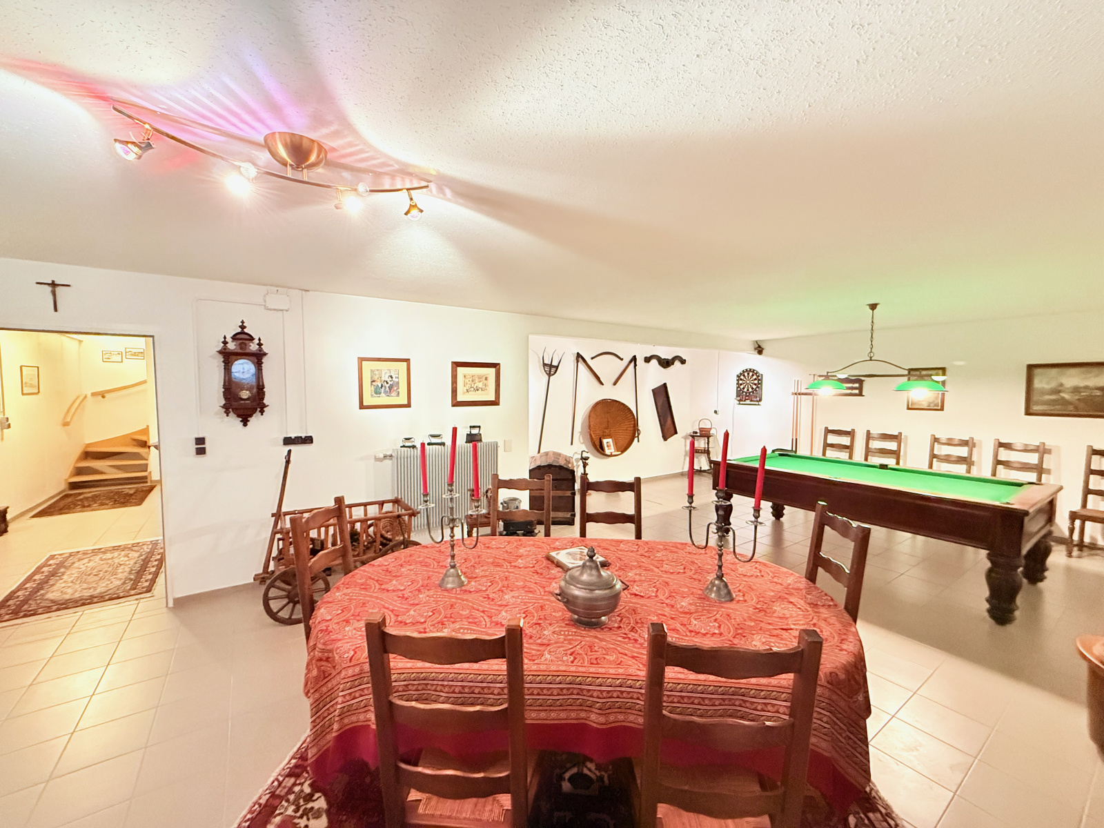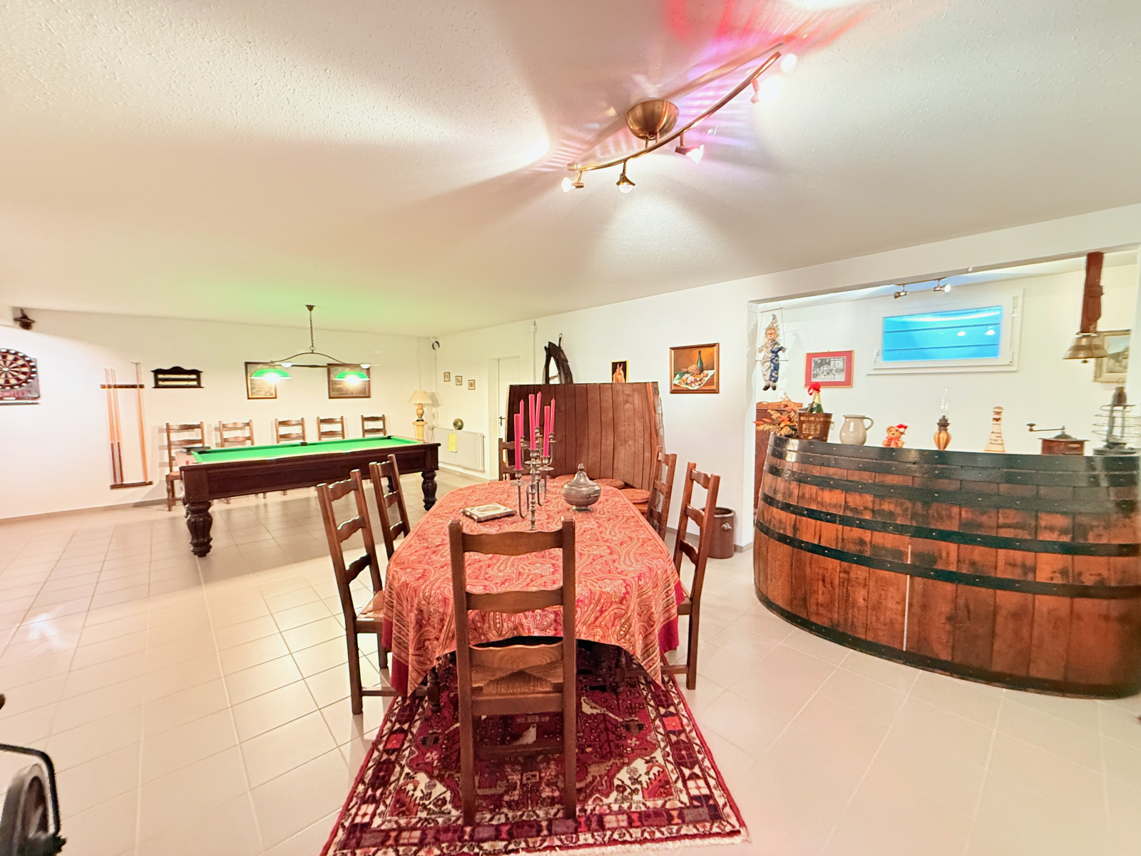 Le sous-sol, véritable joyau de cette propriété, dévoile 240 m² d’aménagements haut de gamme : une salle de billard et de dégustation avec bar à vins (57 m²), une cave à vin gravillonnée (30,79 m²) pour les amateurs d’œnologie, un atelier spacieux (75 m²) avec accès extérieur et trappe à bois, une chaufferie-buanderie (43,56 m²), ainsi que deux caves annexes (18,24 m² et 17,91 m²). Chaque détail a été pensé pour allier plaisir et praticité.