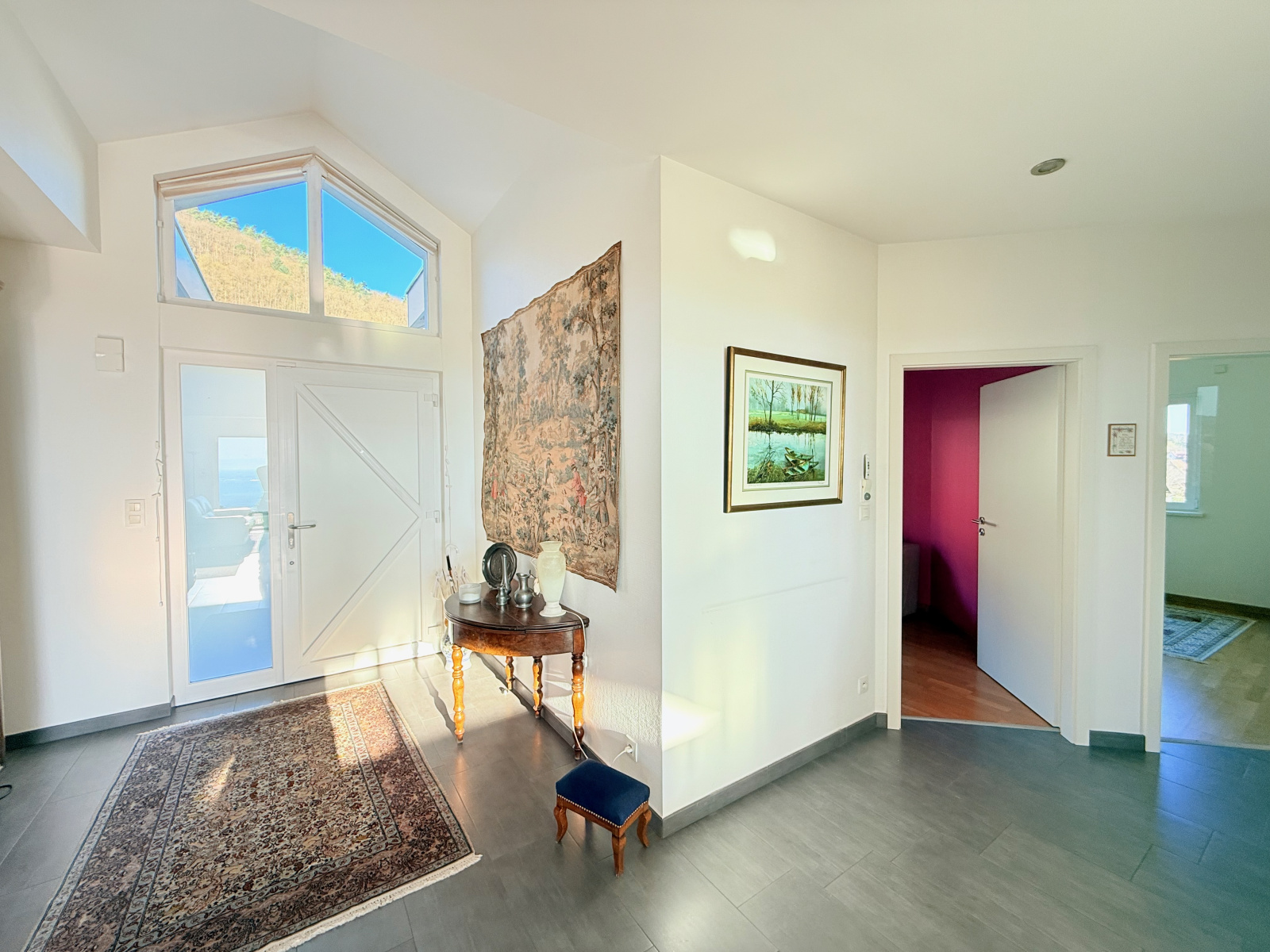 Husseren-les-Châteaux, blotti entre les vignes et les vestiges médiévaux des trois châteaux d’Eguisheim, est un écrin préservé à seulement 10 minutes de Colmar. Cette villa, par sa position dominante et ses volumes rares, s’adresse à une clientèle exigeante en quête d’un bien d’exception, loin des standards habituels.
