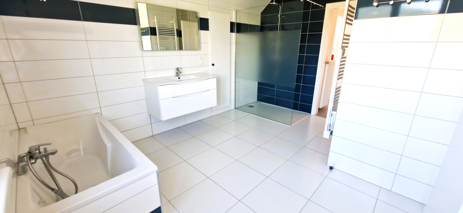 A l'étage vous trouverez trois grandes chambres, une salle de bain et un WC séparé.