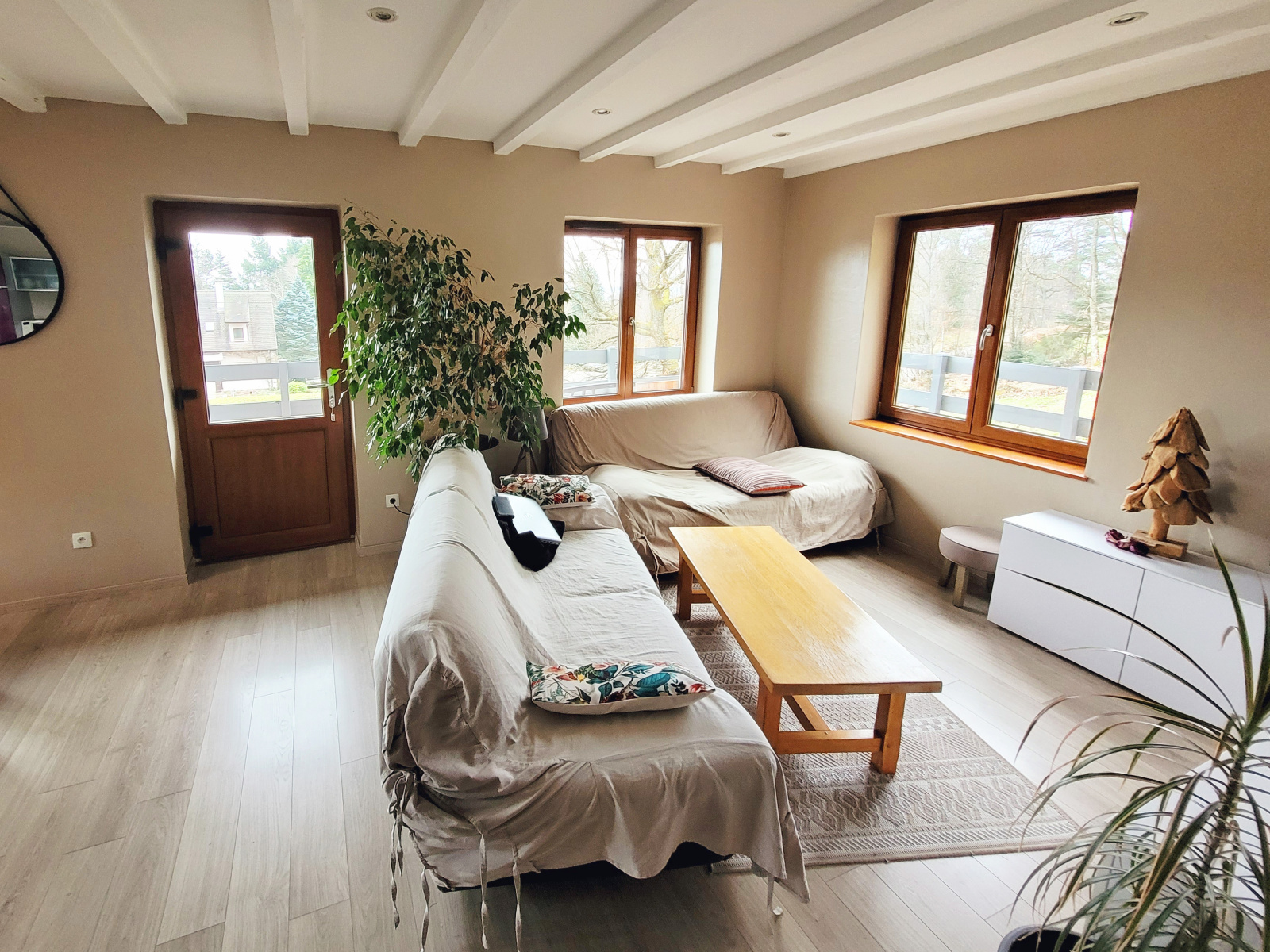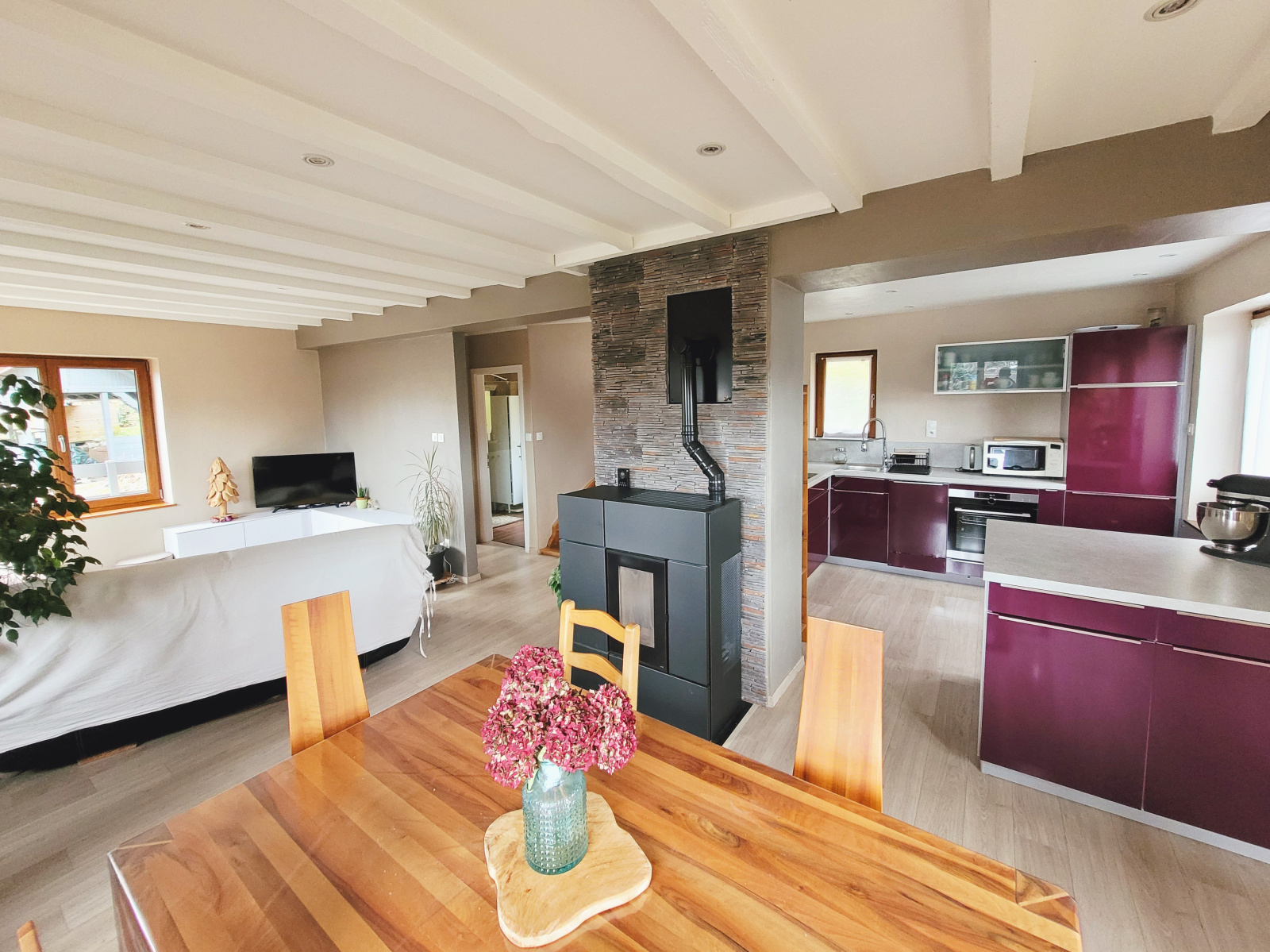 - Au premier étage, se trouvent un joli salon-séjour ouvert sur la cuisine récente et entièrement équipée. Il dispose également d’une salle d’eau et d’un WC. Un grand balcon en forme de U permet de profiter de l’extérieur quasiment tout autour de la maison. La vue vers le Haut Koeniegsbourg, la montagne et la foret y est magnifique et l'exposition parfaite : SUD / SUD EST / EST