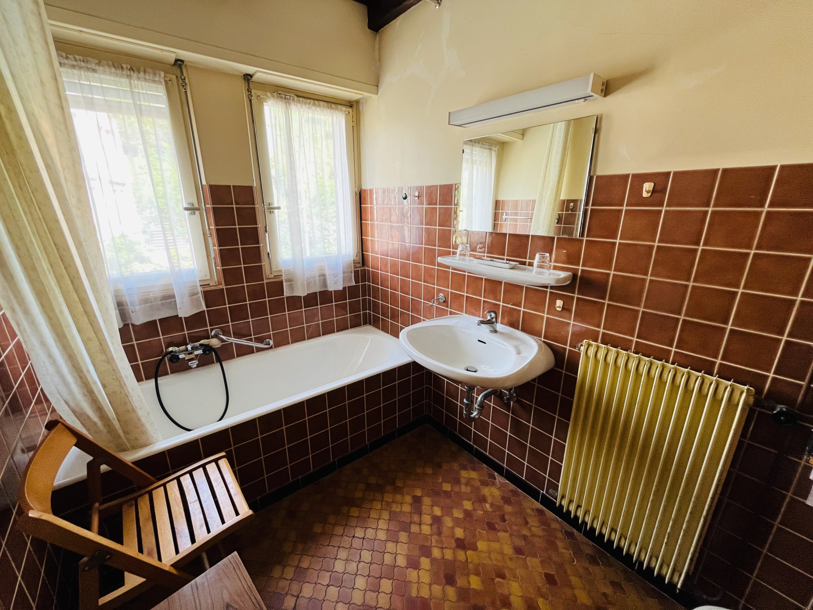 Aujourd’hui divisée en deux logements (un par étage), la maison est évolutive et peut être envisagée soit pour deux résidents distincts, soit pour une seule habitation avec la possibilité de rénover une partie après l’autre.