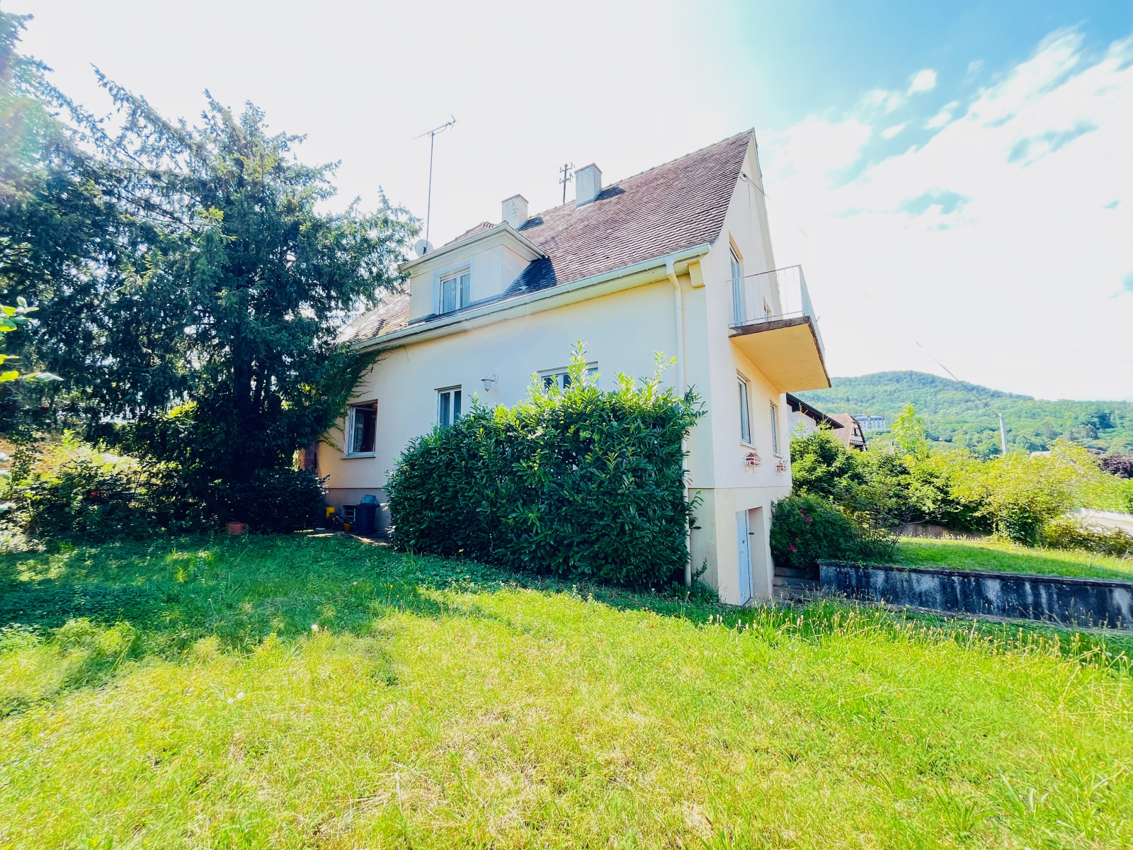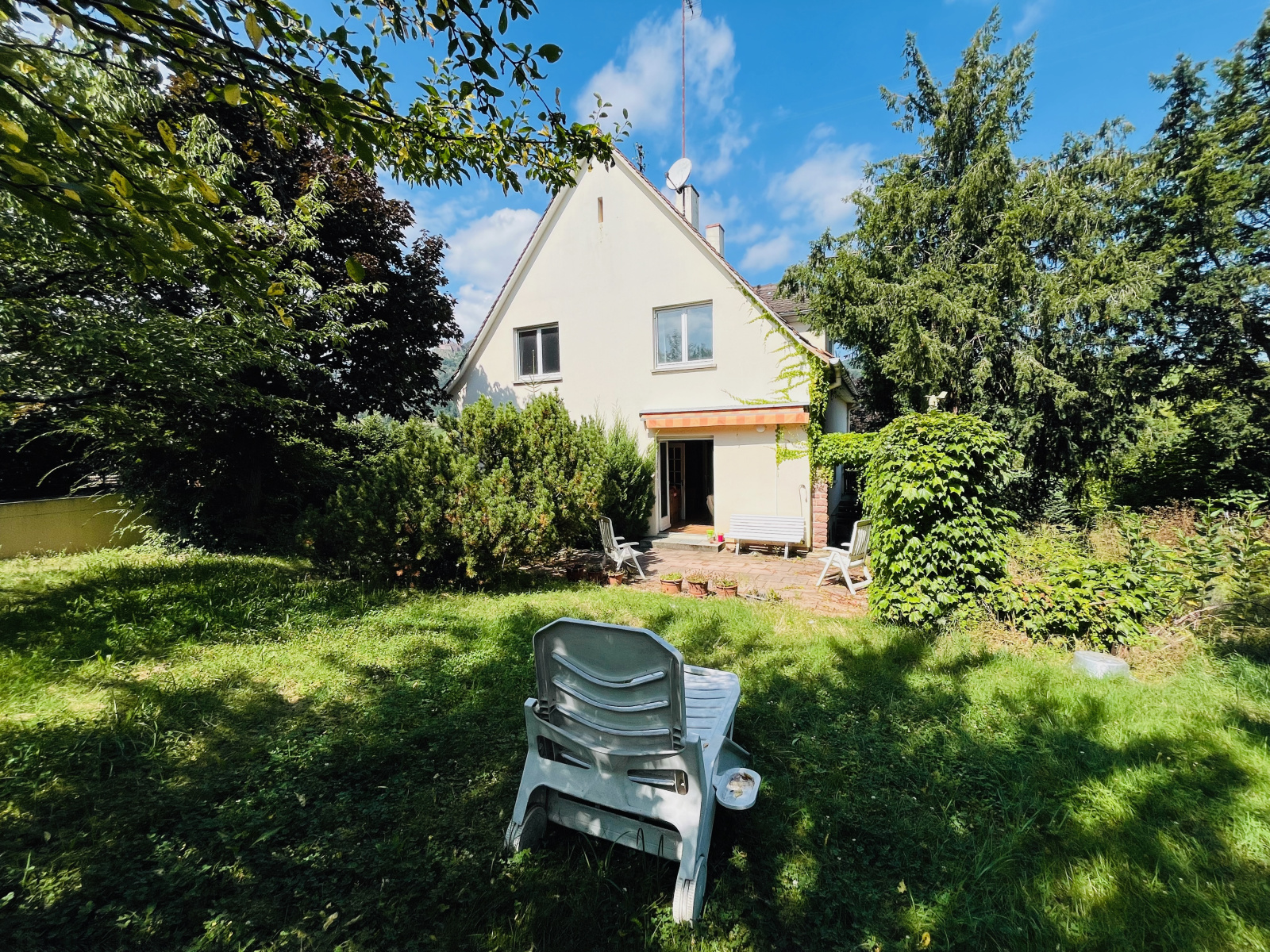 Entre Colmar et Sélestat, à Ribeauvillé dans un quartier recherché sur les hauteurs avec vue sur les châteaux et la ville, maison de 1970 de 170m2 habitables avec 5 chambres et la possibilité de vivre qu’au rez-de-chaussée en version plain-pied.