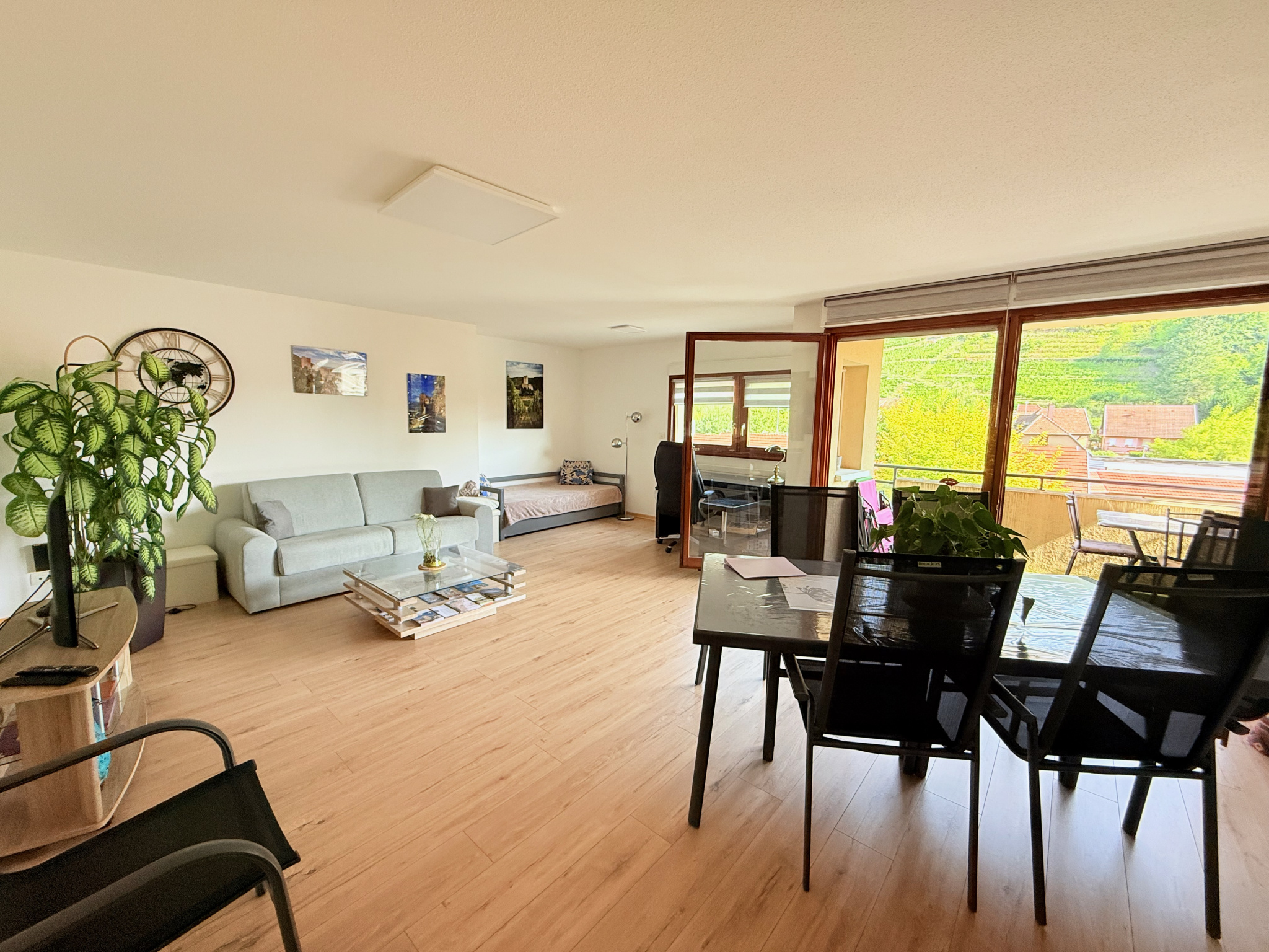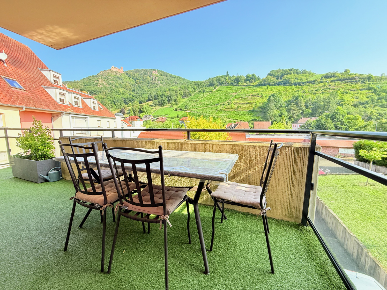 Sur les hauteurs de Ribeauvillé, entre Colmar et Sélestat, appartement T3 de 61,56 m² (actuellement T2, convertible en T3) dans une copropriété calme de 2000, avec ascenseur, proche de la nature.
