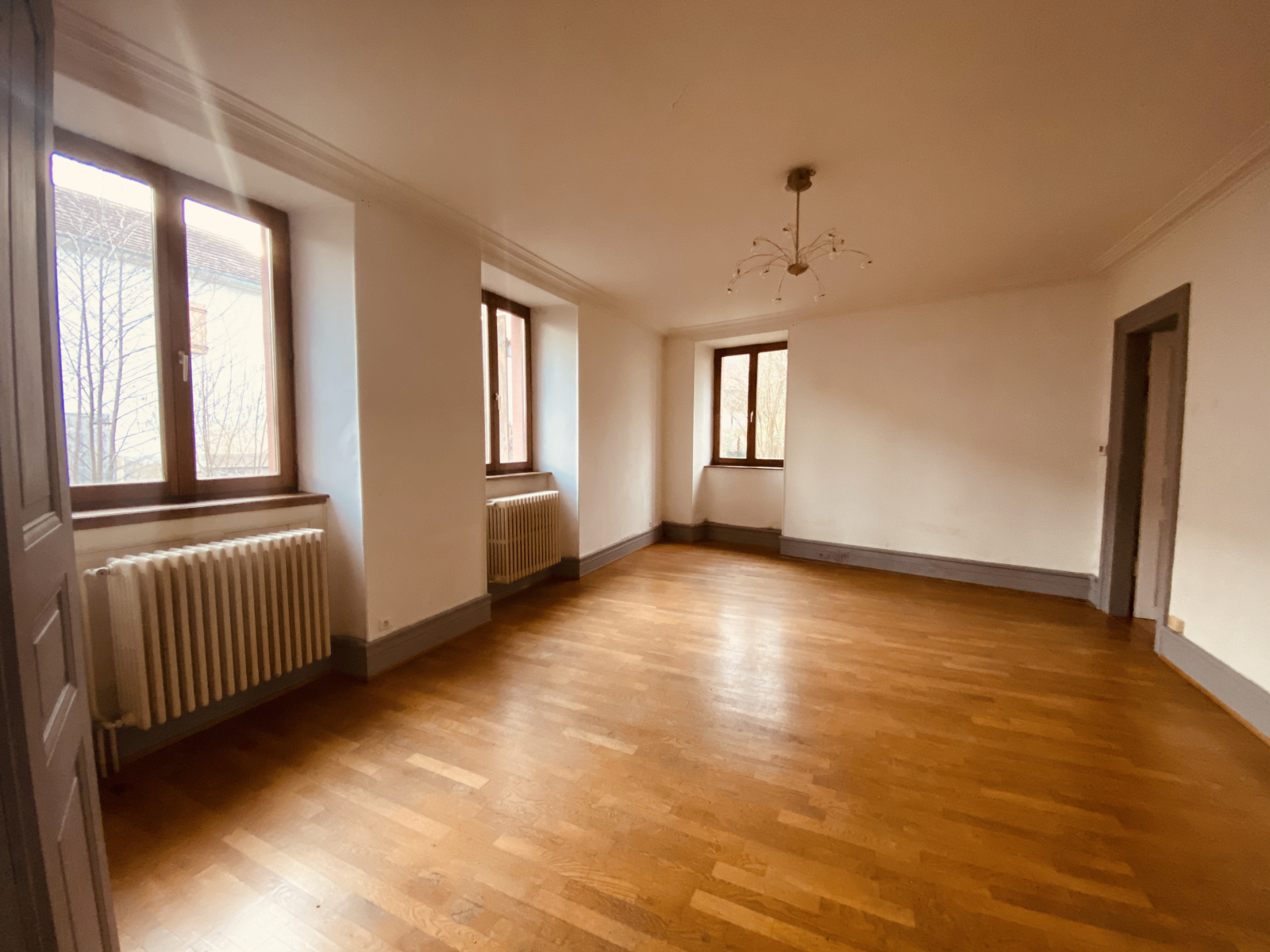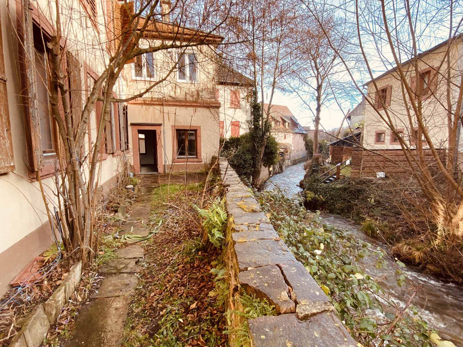 Ribeauvillé Haute-ville: Appartement spacieux et haut de plafond (2,97m) T5 avec 3 chambres, un grand salon séjour, une entrée, une cuisine et un jardin plein Sud donnant sur la rivière de la Streng. Immeuble de 1900 type maison de maitre! Jardin de 76m2 env. au calme! Cave. Nombreuses posibilités de stationnement dans la rue. 1550€/m2. Lycée Ribeaupierre à 300m. Chauffage gaz individuel de 2014. Idéal pour une famille. Lumineux!