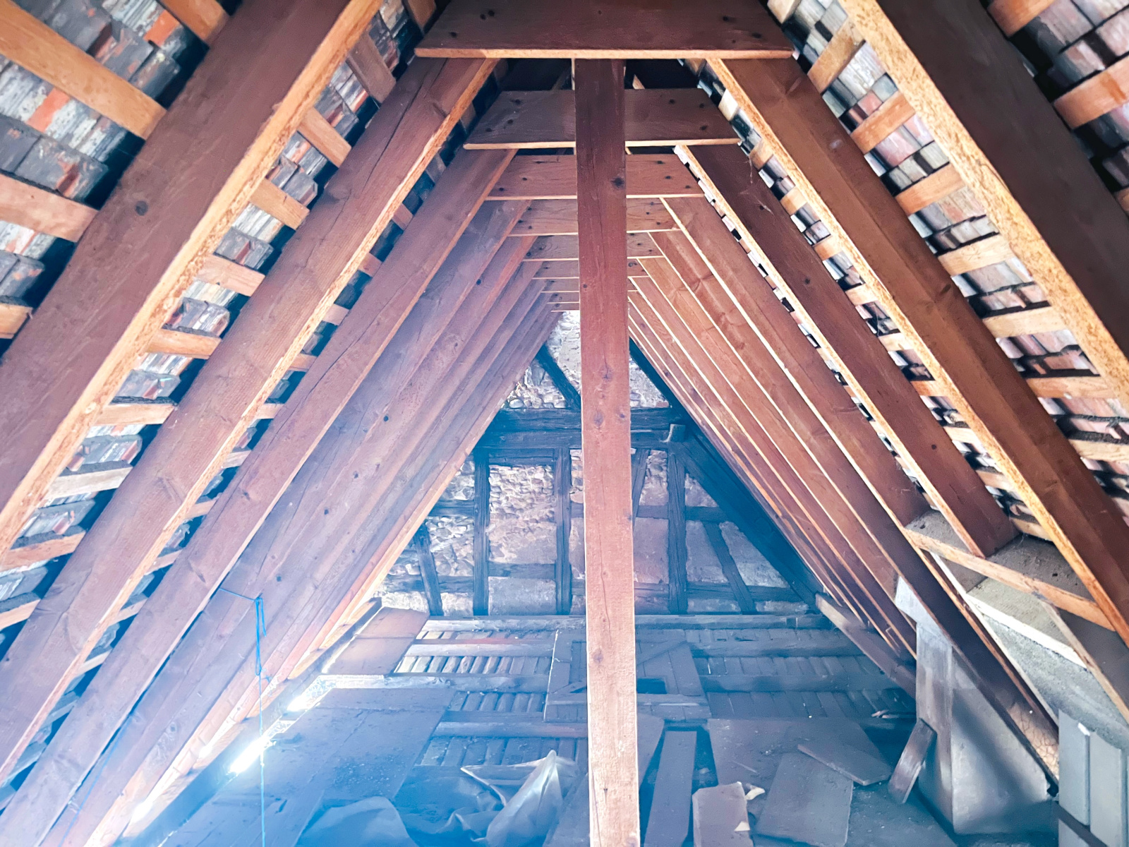 La charpente est en très bon état avec certaines parties anciennes et d’autres très récentes mais l’état est impeccable.