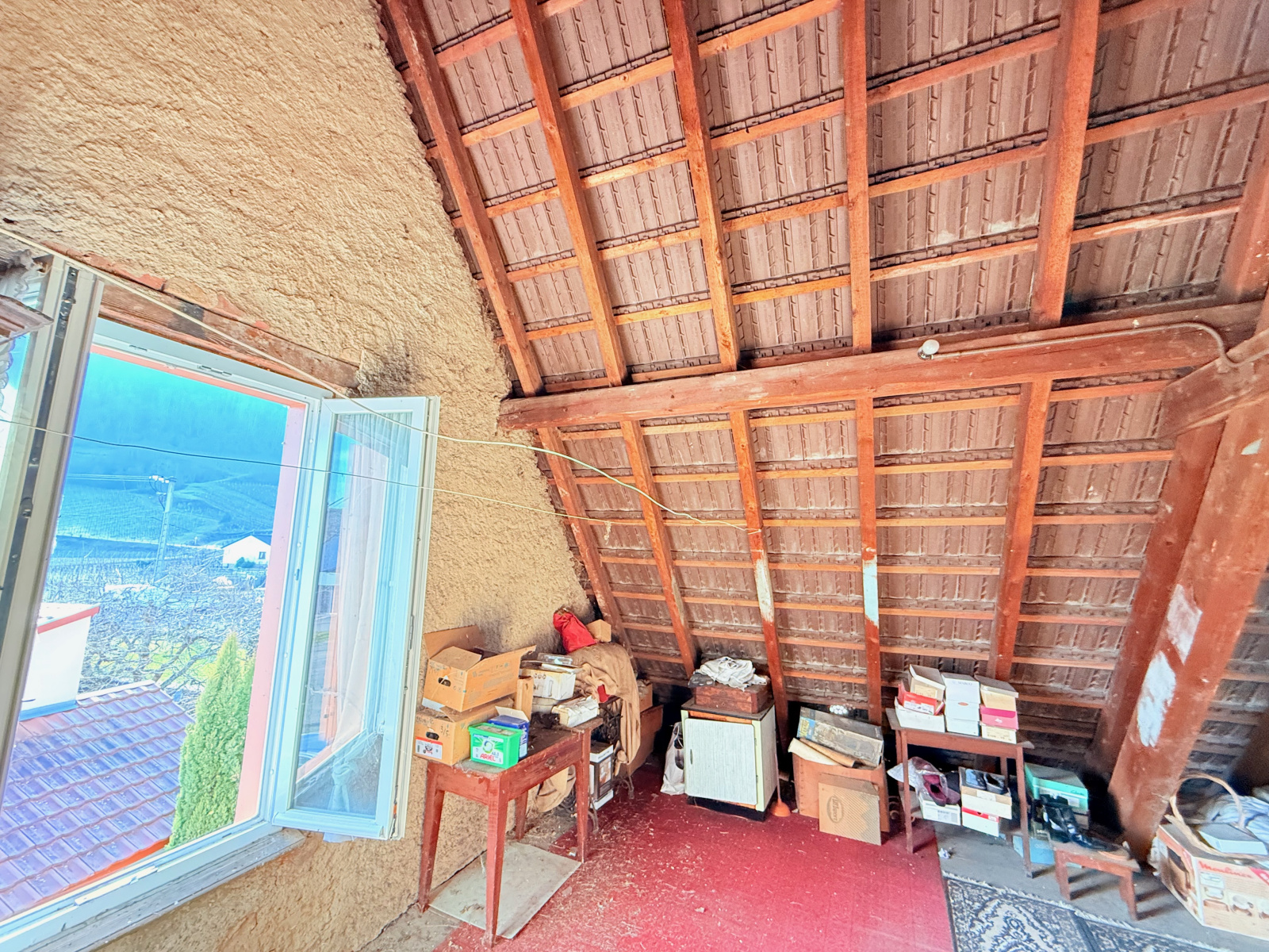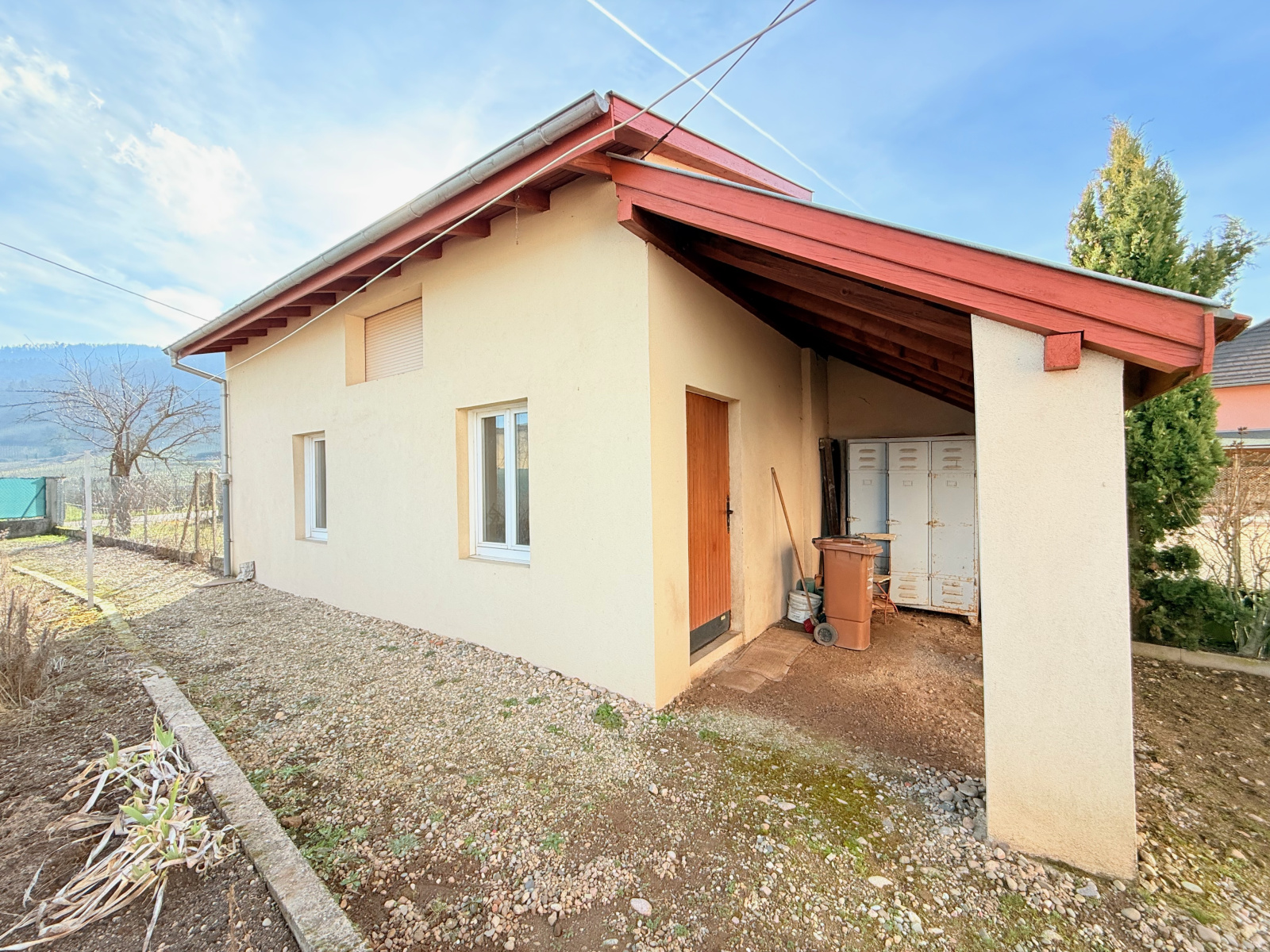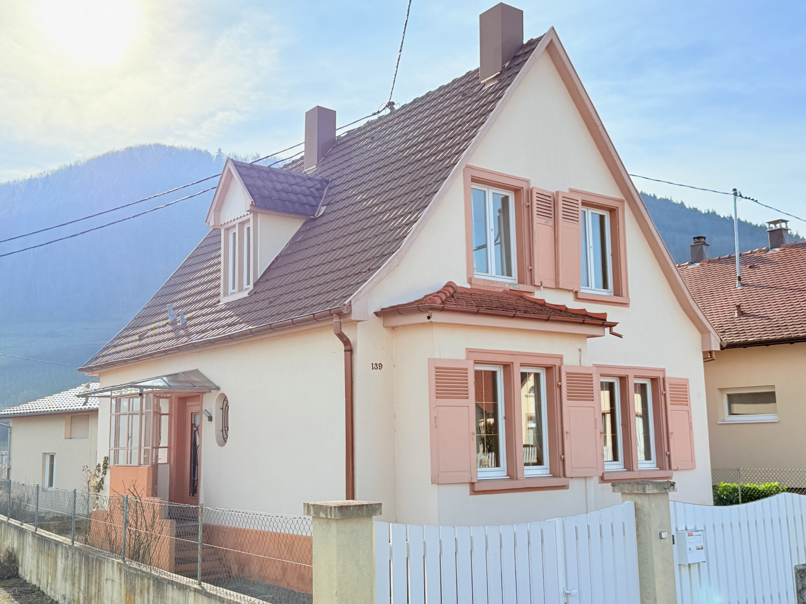 La maison offre de belles vues sur les montagnes environnantes et possède un jardin et un une petite dépendance servant de garage directement sur la partie Sud du terrain avec un accès arrière par la rue du Ehrberg. Il est donc possible d’accès à la maison soit par la rue Clemenceau ou du Ehrberg.