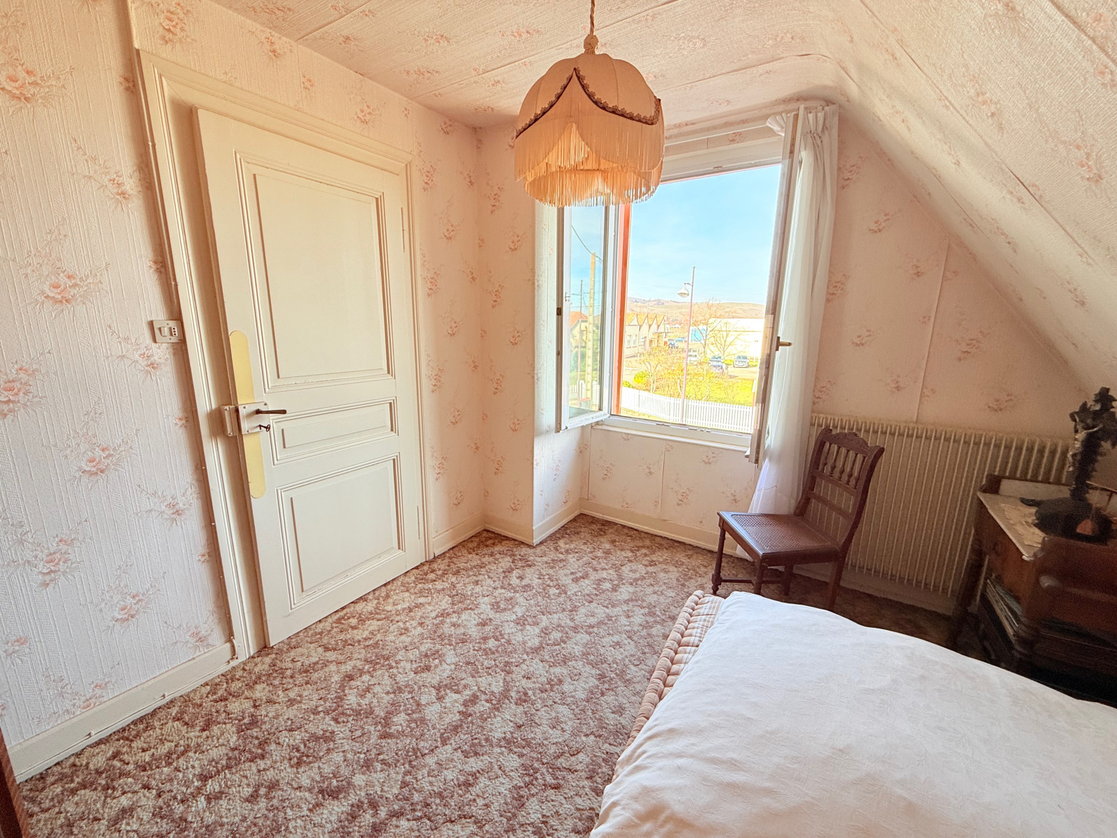 La maison a un charme indéniable avec ses double fenêtres séparé par du grès rose, car la maison est construite en granite et grès rose des Vosges.