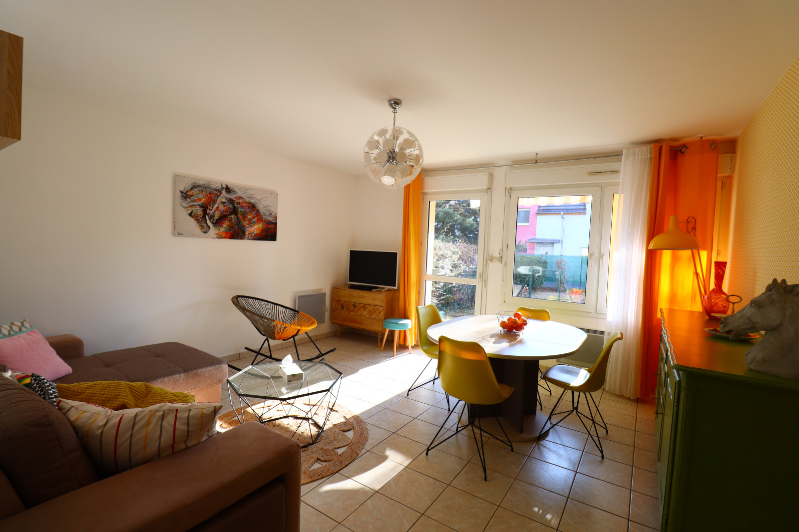 Entre Colmar et Wintzenheim, lumineux appartement 2 pièces de 54m2 avec une chambre en rez-de-jardin et avec un jardin de 50m2 env.