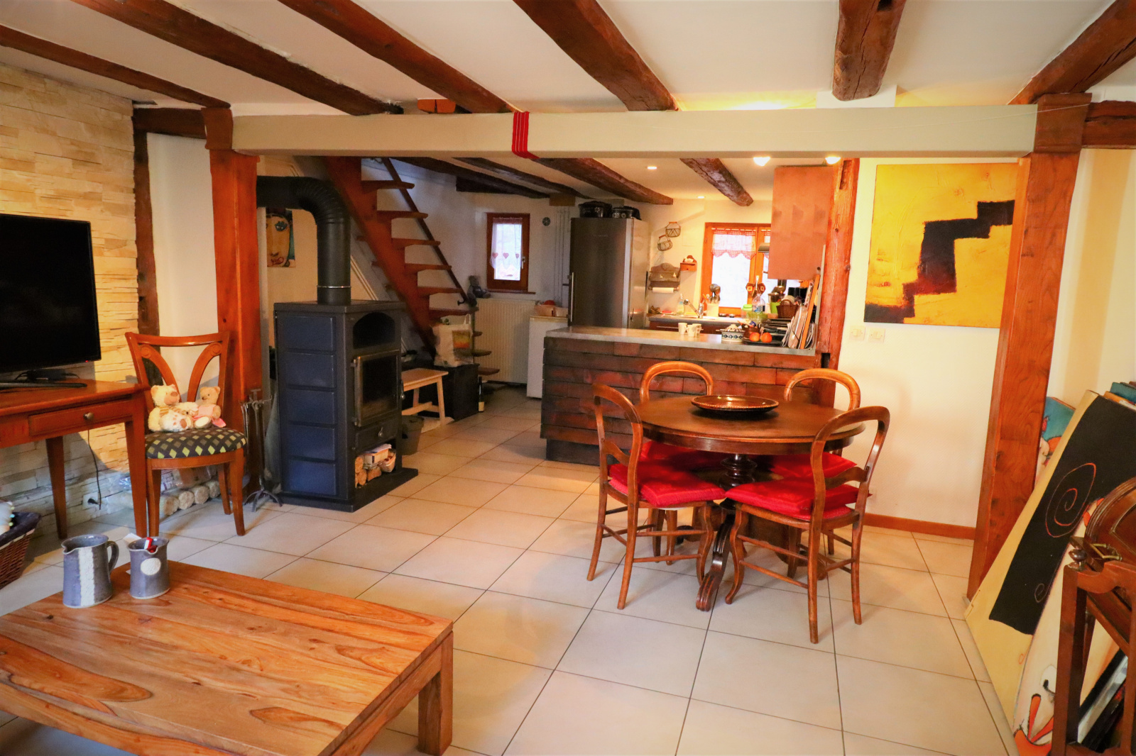 RDC: Cuisine ouverte sur le salon/séjour de 36 m2 env.