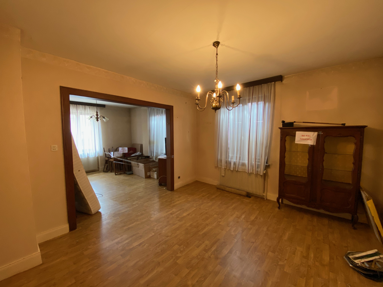 L'ensemble est constitué d'une maison d'habitation des années 1900 de 120m2 env. sur deux niveaux avec 6 pièces et 3 chambres et un sous-sol, d'une annexe en face de 85m2 env. sur deux niveaux bruts et d'une grange sur le terrain arrière de 200m2 au sol avec un pignon du toit à 12m de hauteur. L'ensemble est à rénover intégralement.